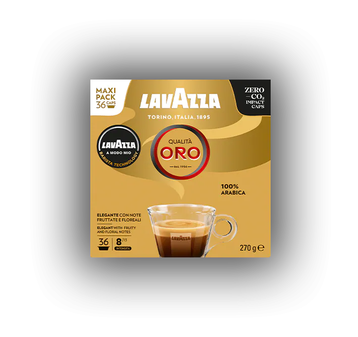 36 капсул, содержащих молотый кофе, упакованный в защищенной атмосфере, разработанной Lavazza для системы A Modo Mio. В них содержится высококачественный кофе, который отличается мягким, нежным вкусом и сильным ароматом.