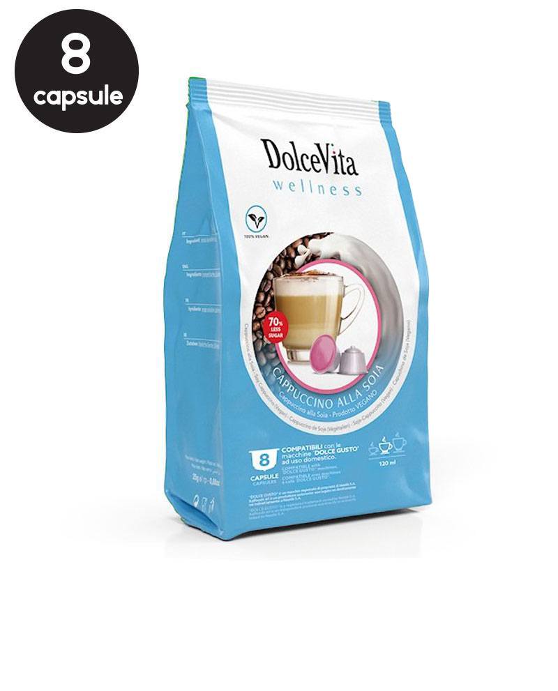 Наслаждайтесь кремовым и вкусным капучино, теперь в растительной версии! Dolce Vite Soy Cappuccino идеально сочетает в себе интенсивный аромат кофе с мягкостью соевого молока, предлагая особые ощущения для любителей напитков без лактозы. Совместимые с системой Dolce Gusto, эти капсулы являются идеальным выбором для деликатного и здорового перерыва, подходящего для любого времени дня.