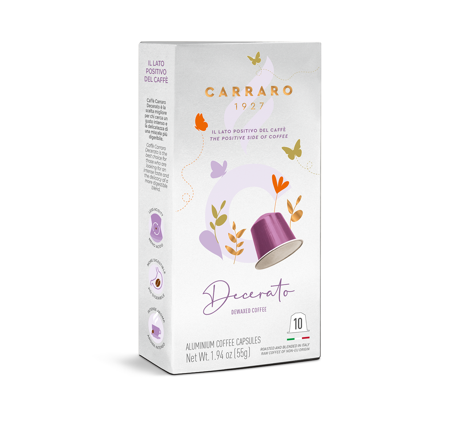 Депарафинированные кофейные капсулы, меньшая кислотность, более легкоусвояемость, интенсивный ароматCaffè Carraro Decerato — лучший выбор для тех, кто ищет интенсивный вкус и деликатность более усваиваемой смеси. Слой натуральных восков, которые трудно усваиваются, покрывает кофейные зерна. Благодаря процессу депарафинизации мы ограничиваем их кислотность. Таким образом, мы получаем идеальный кофе, хорошо сбалансированный между ароматом, вкусом и усваиваемостью.