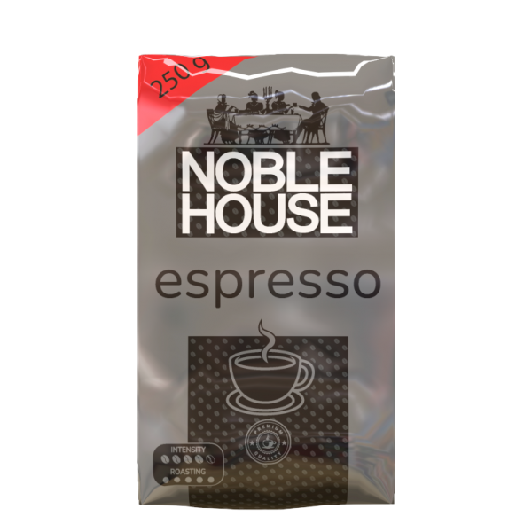 Cafeaua măcinată NOBLE HOUSE ESPRESSO este boabe de înaltă calitate și bine prăjite pentru un espresso adevărat. Te poti bucura de gustul revigorant al acestei cafele in orice situatie.