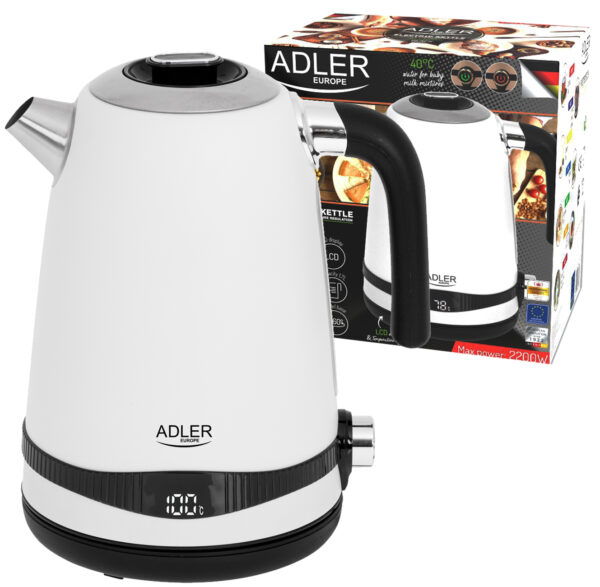 Fierbătorul “ADLER” este un aparat elegant și practic, care vă oferă o putere de 2200W, astfel că veți avea posibilitatea de a încălzi apa eficient, rapid și în siguranță pentru prepararea băuturii calde preferată.