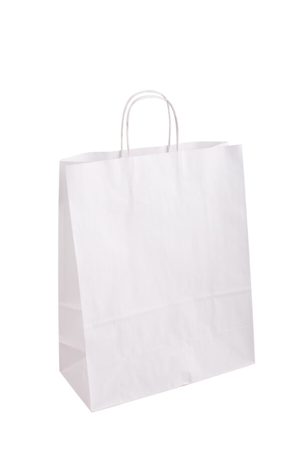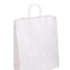 Pungile din hartie Kraft albe sunt elegante, datorită simplitatii hartiei albe, putand fi folosite atat pentru ambalarea si transportul cadourilor, dar si pentru livrarea produselor de patiserie si cofetarie. Pliul lateral permite utilizarea pentru produse care au nevoie de o pozitie verticala pentru a fi transportate in siguranta si fara a le fi afectate caracteristicile. Manerele sunt realizate din hartie rasucita, asigurand o rezistenta mai mare la manevrare. Pot fi utilizate si pentru transportul cumparaturilor.